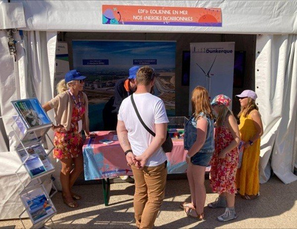 Plus de 4 500 riverains, estivants et vacanciers sont venus s’informer, échanger à propos du projet éolien en mer de Dunkerque avec les équipes d’EMD et RTE, présentes sur cet évènement depuis sa création en 2021. Des explications relatives au fonctionnement d’un parc éolien en mer, du réseau de transport d’électricité ou encore à la biodiversité du territoire dunkerquois ont été partagées au travers de jeux et de différents ateliers ludiques (casques de réalité virtuelle, jeux, dessin, puzzle, etc.) qui ont permis de rendre accessibles des sujets techniques, dans une ambiance conviviale.