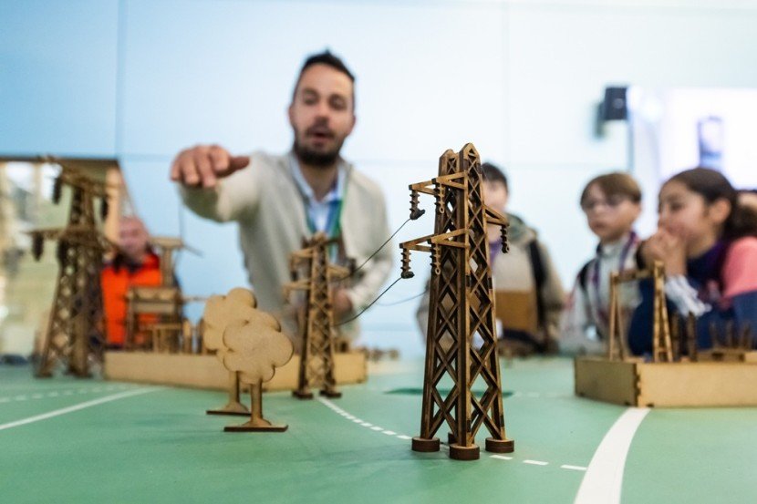Des enfants plus jeunes peuvent également faire leur première découverte des réseaux électriques lors de Journées portes ouvertes, grâce à un kit qui se déploie en quelques minutes en une maquette représentant le système électrique et les métiers RTE.