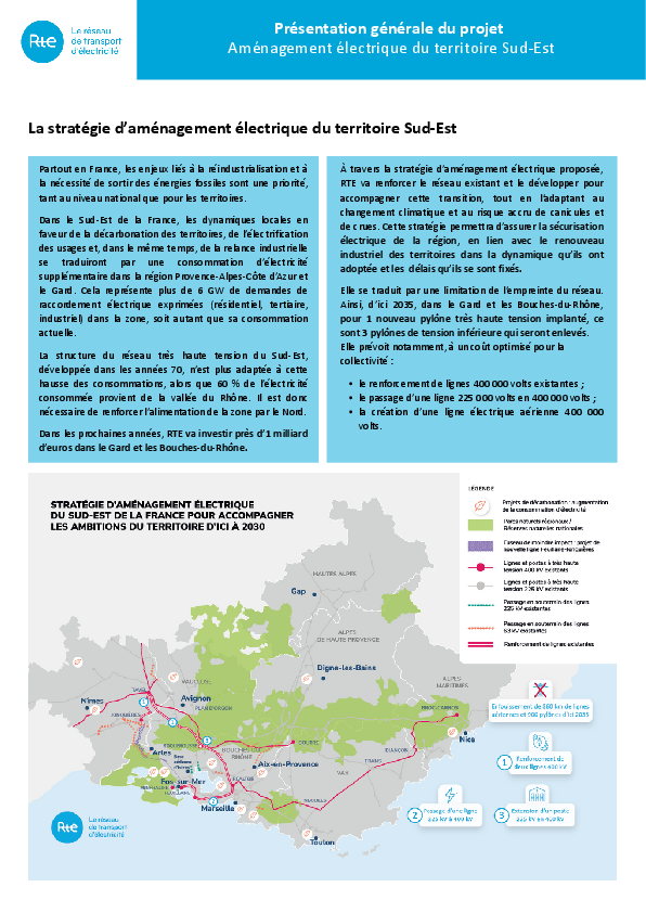 Il s’inscrit dans une démarche d’intérêt général dont les retombées profiteront à l’ensemble du territoire. Au-delà de la zone de Fos-sur-Mer, le système électrique du territoire doit pouvoir faire face aux autres évolutions de la consommation d’électricité, comme le fort développement des datacenters sur la zone Aix-Marseille, le raccordement des navires à quai des ports régionaux et des transferts d’usage vers l’électricité dans le cadre de la transition énergétique (développement des pompes à chaleur, des véhicules électriques, etc.).