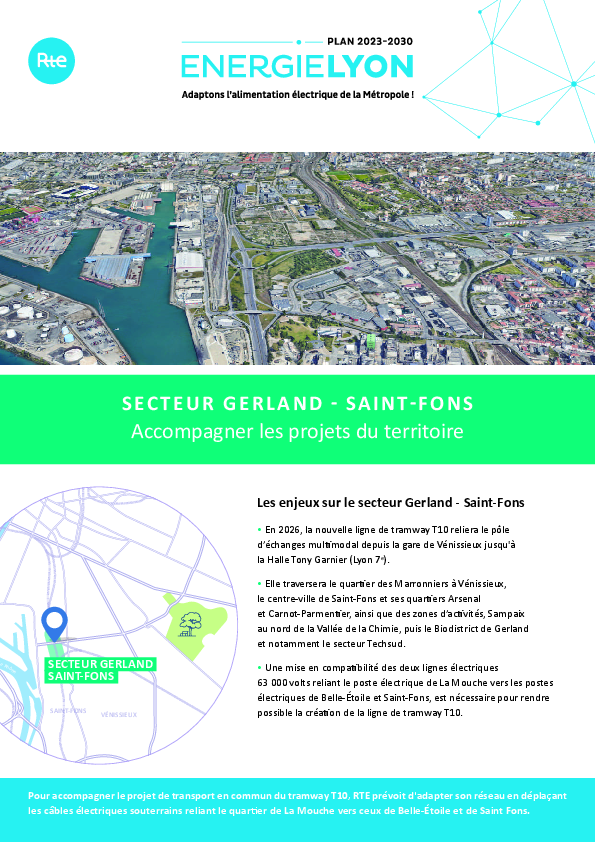 - Adaptation des lignes 63 000 volts du quartier de Belle-Étoile vers celui de La Mouche et du quartier de La Mouche vers Saint-Fons Nord au tracé de la ligne de tram T10