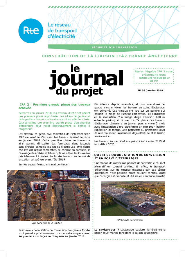 Sous-marine sur 200 kilomètres et souterraine sur une trentaine de kilomètres, la liaison IFA2 relie la Basse-Normandie à la côté sud de l’Angleterre. Avec une capacité de 1000 MW en courant continu, elle renforce les capacités d’échange entre les deux pays. RTE a travaillé sur ce projet en collaboration avec National Grid Interconnectors Limited, une filiale de son homologue anglais. La mise en service a été réalisée le 22 janvier 2021.