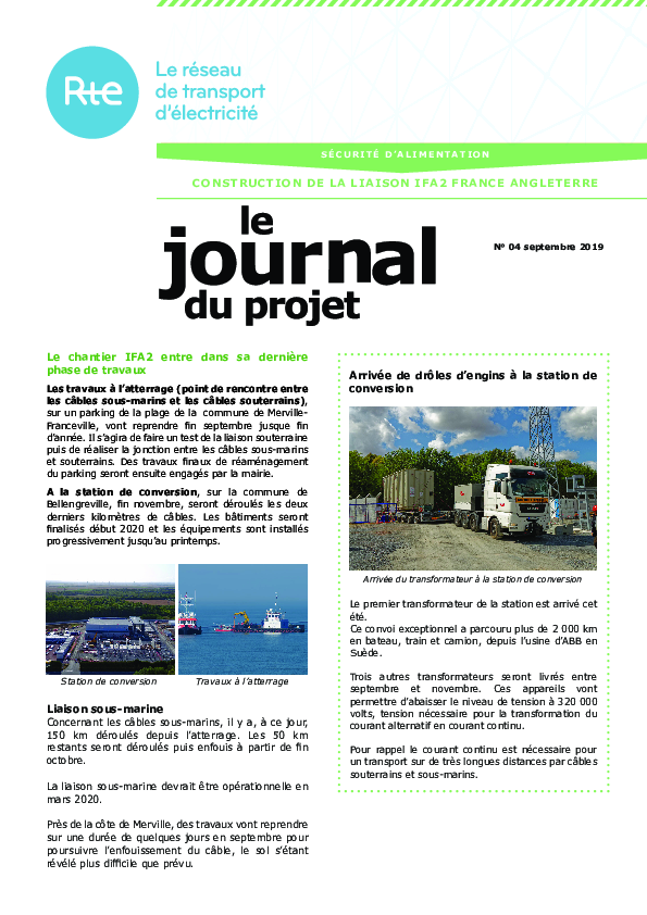 Le chantier IFA2 vient d’entrer dans une phase symbolique avec le déroulage des premiers kilomètres de câbles en mer côté français. Du 17 au 21 mai, un navire câblier situé à 2,5km des côtes française...