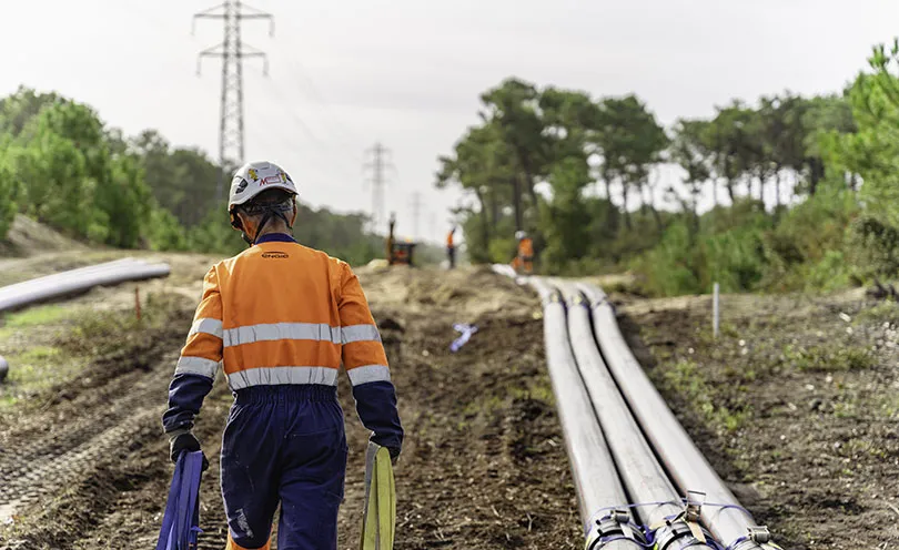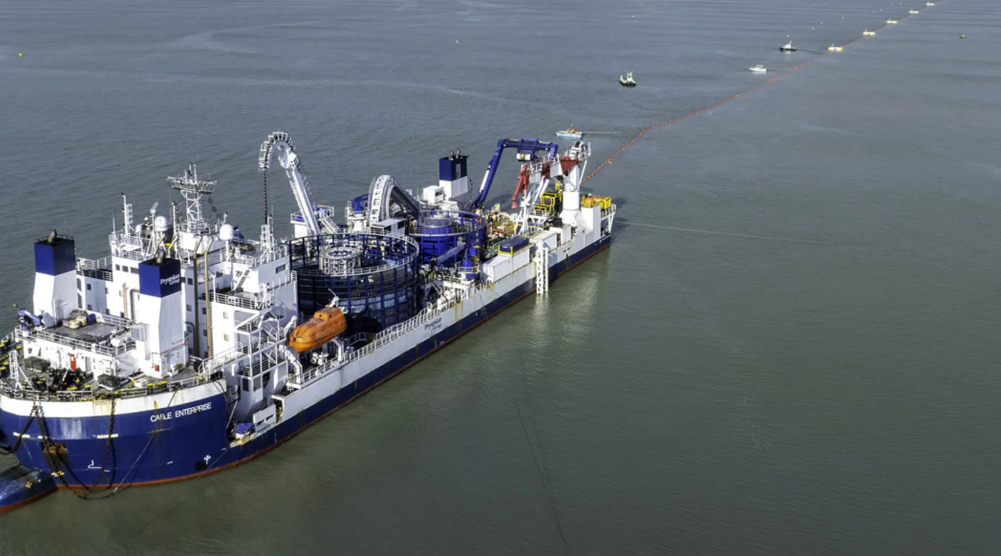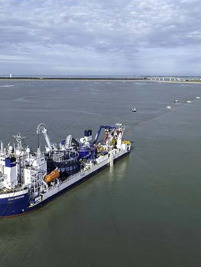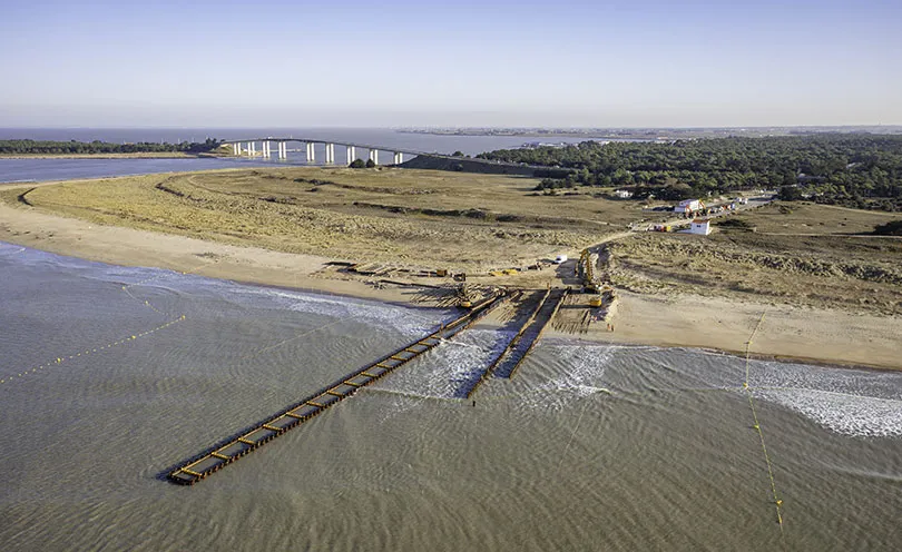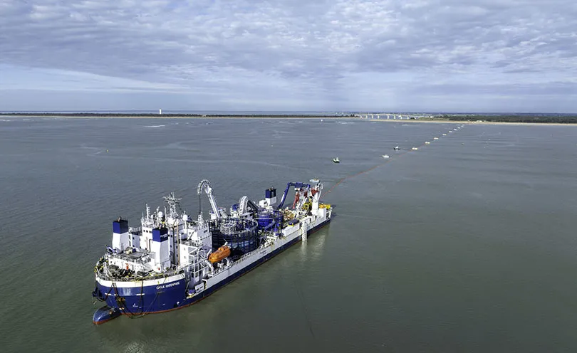 Installation d'une double liaison sous-marine 225 000 Volts sur 27 kilomètres, depuis le poste électrique en mer jusqu’à la côte.