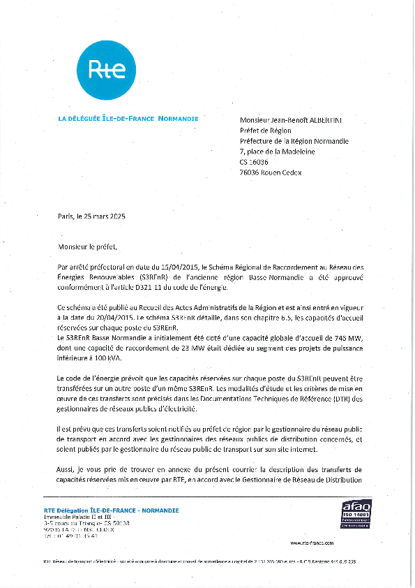 À la demande du Préfet, ou lorsque des critères de révision sont atteints, les S3REnR seront révisés à la maille de la nouvelle région administrative Normandie sur la base d’une capacité d’accueil globale fixée par le Préfet de région en tenant compte de la PPE, du SRADDET (qui remplacent les SRCAE) et de la dynamique de développement des EnR dans la région.