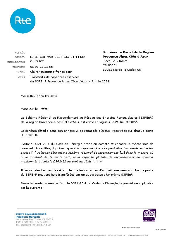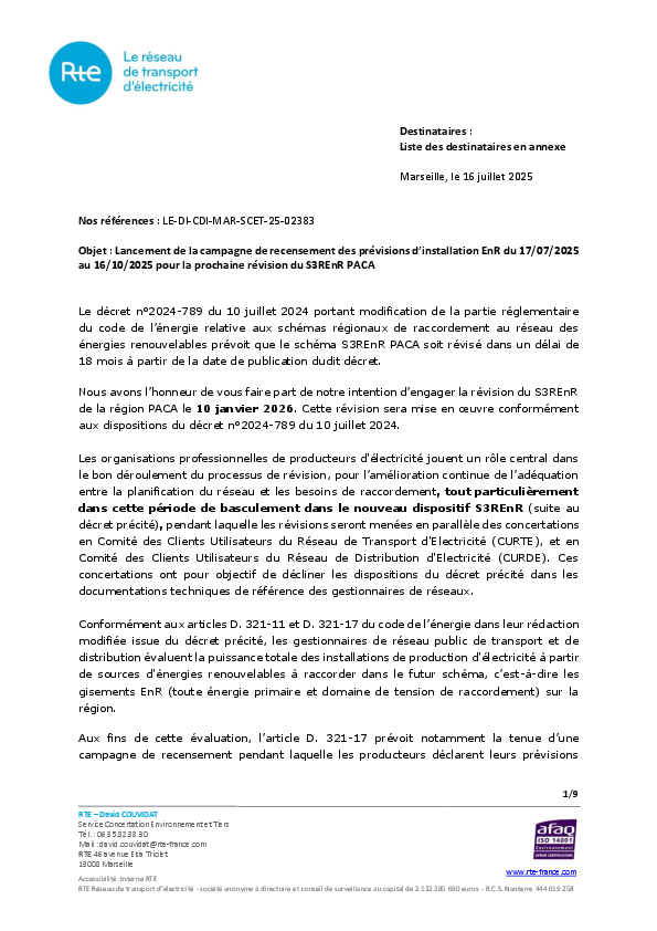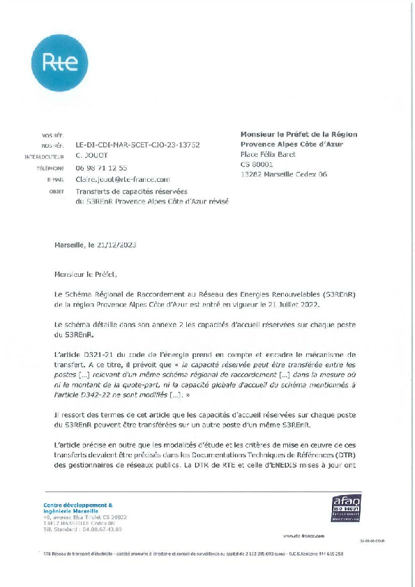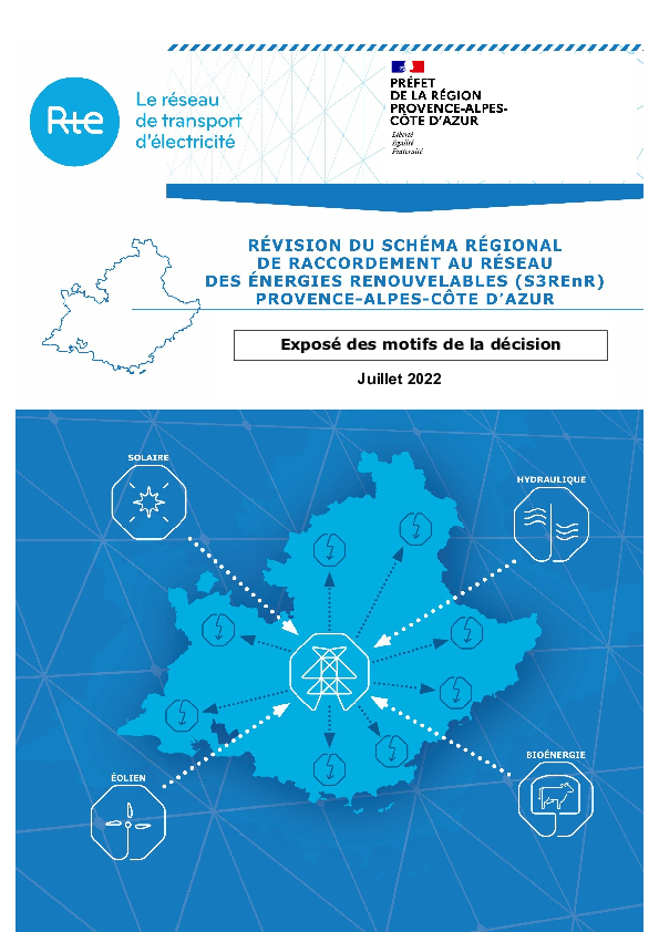 Après plus de deux années d’études et de concertation menées par RTE en collaboration avec Enedis et EDSB (Energie Développement Services du Briançonnais), le nouveau « Schéma Régional de Raccordement au Réseau des Énergies Renouvelables » de la région Provence-Alpes-Côte d’Azur entre en vigueur ce 21 juillet 2022 suite à la validation par le Préfet de Région du montant de la quote-part associée.